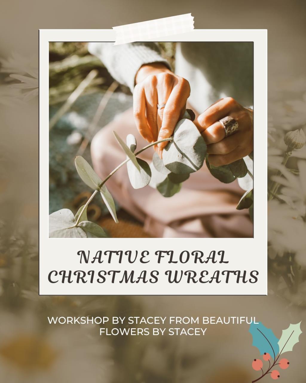 Join Stacey from Beautiful Flowers by Stacey at Bassendean Memorial Library for a festive, hands-on workshop where you'll learn to craft your own stunning Christmas wreath using beautiful native plants and flowers.